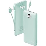 VRURC Portable Charger Built-in Cables and AC Wall Plug, USB C Power Bank 10000mAh, Travel Battery Portable Phone Charger Compact Lightweight External Battery Pack for Smart Phones, Tablets etc-Green